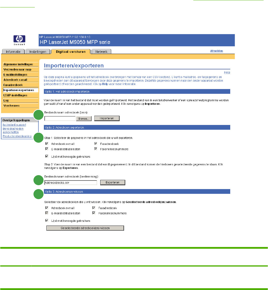 Gebruik deze pagina om een adresboek en gebruikersinformatie te importeren en exporteren naar en
