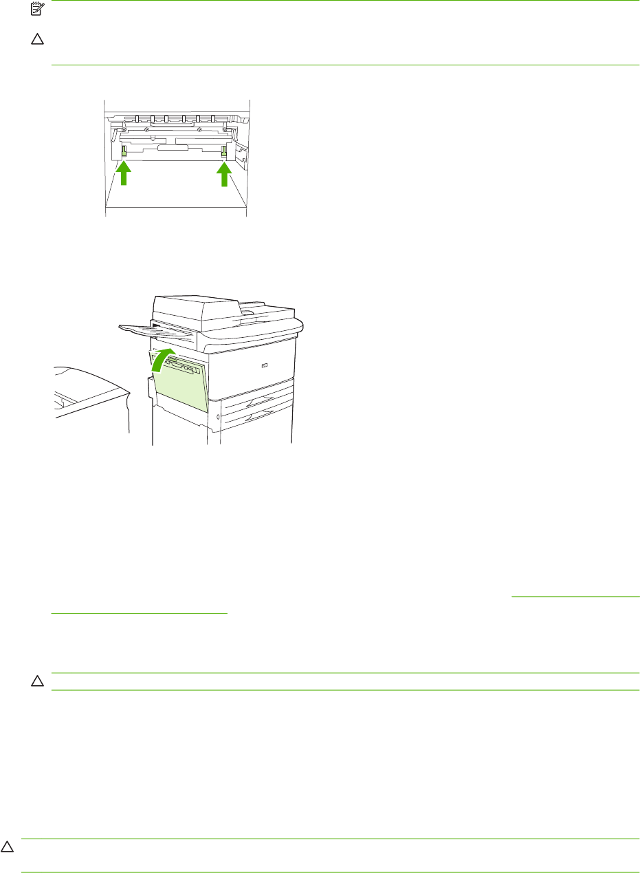 7. When finished printing on envelopes, return the fuser levers to the down position.