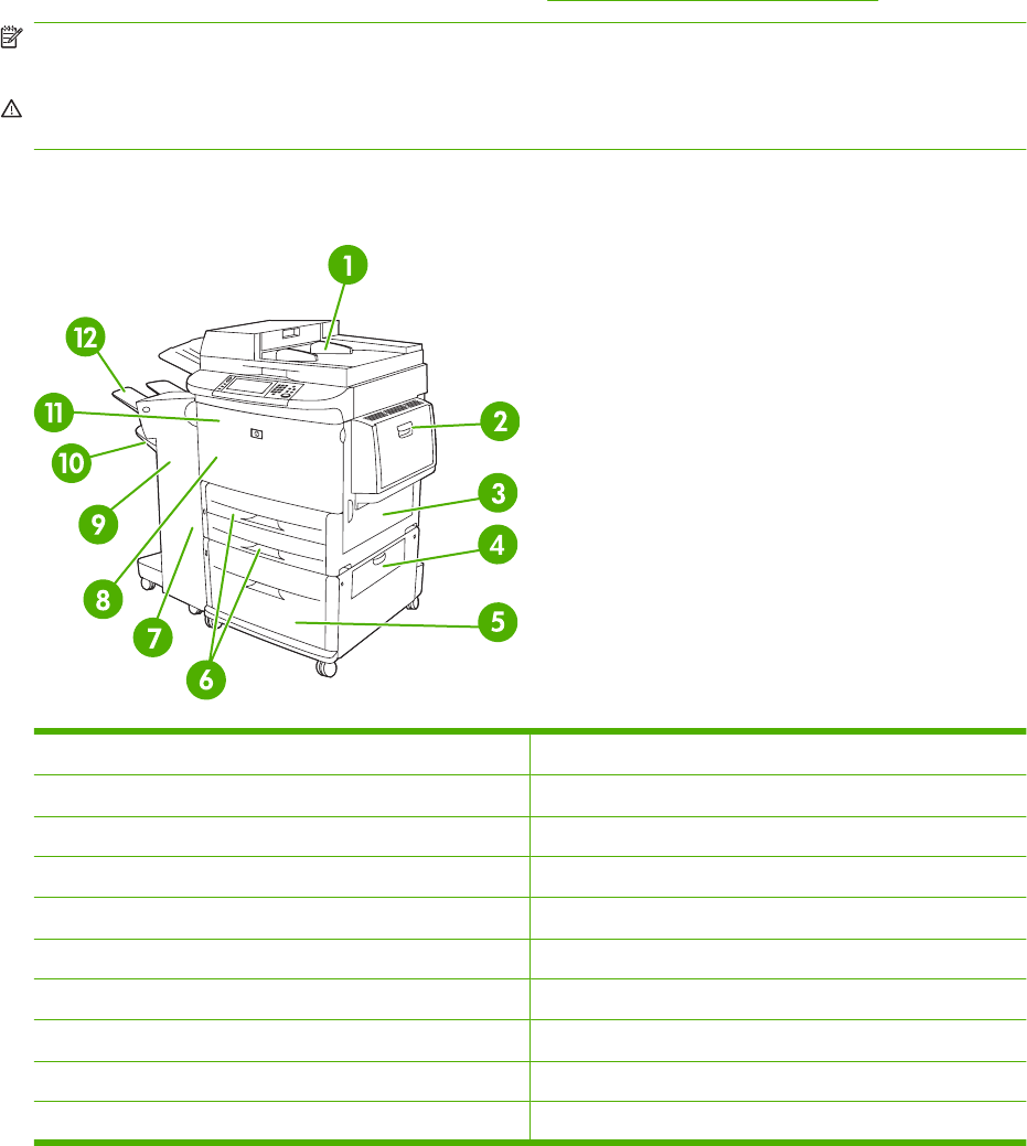 Figure 12-1 HP LaserJet M9040 MFP or HP LaserJet M9050 MFP with the 3000-sheet stapler/stacker