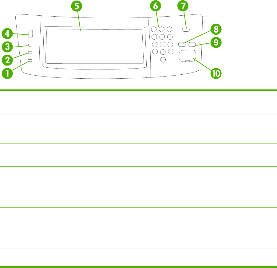 10 Start button Begins a copy job, starts digital sending, or continues a job that has been