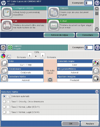 - Setarea dimensiunii şi tipului de hârtie pentru copierea pe hârtie specială