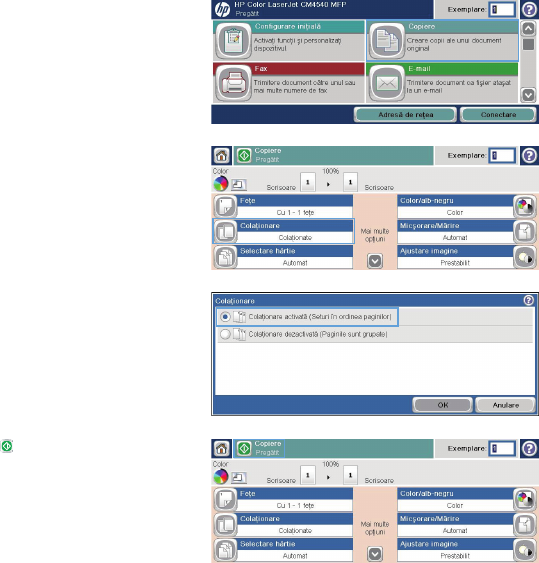 Atingeţi butonul Colaţionare sau butonul