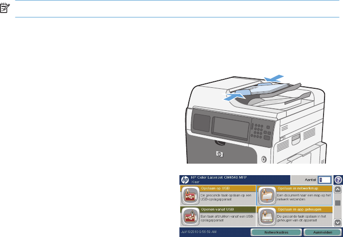 Het apparaat kan een bestand scannen en dit in een map op het netwerk opslaan. Deze functie wordt