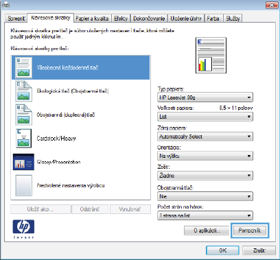 - Používanie papiera, ktorý zodpovedá technickým údajom od spoločnosti HP