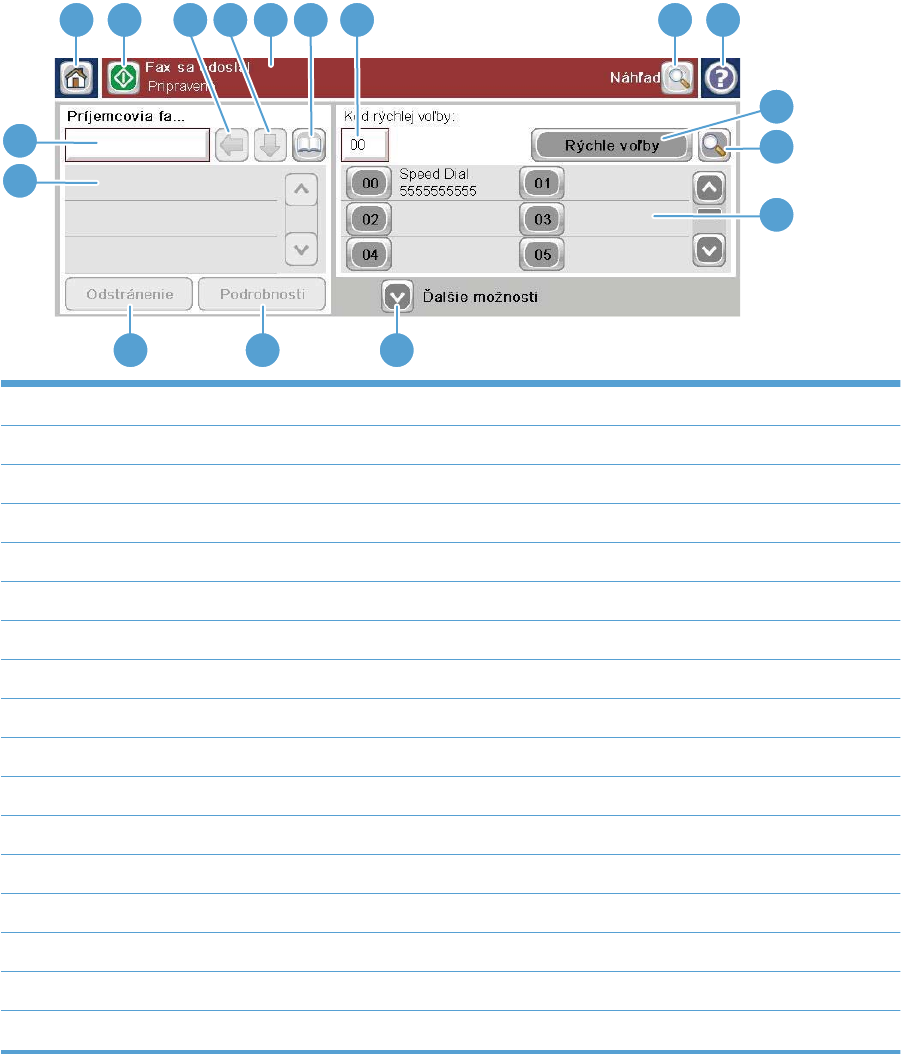 13 Ďalšie možnosti – po dotyku je možné zobraziť alebo nastaviť iné možnosti odosielania faxu.