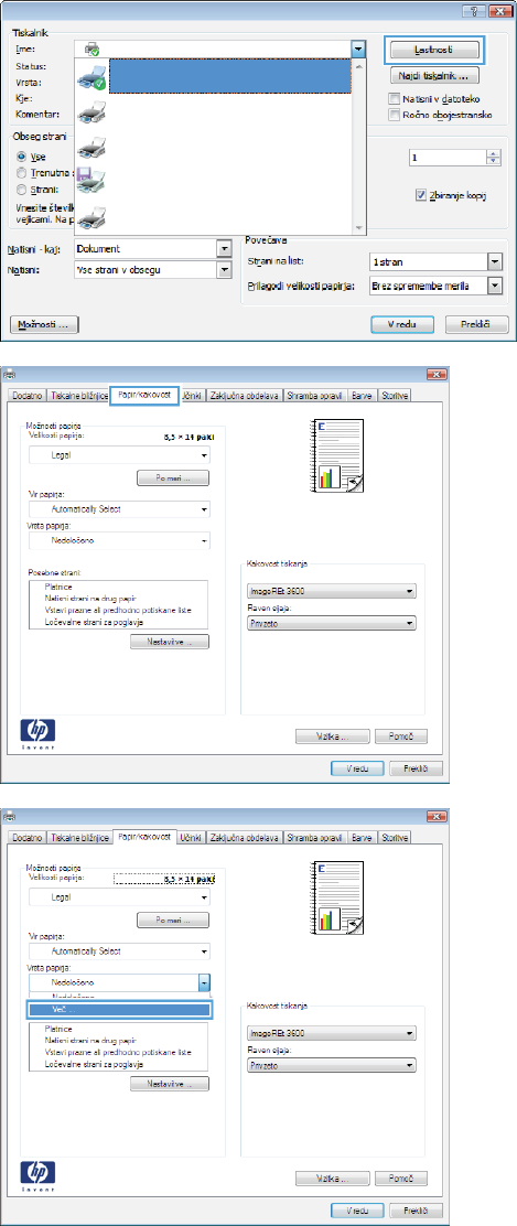 Dodatna opravila tiskanja v operacijskem sistemu Windows