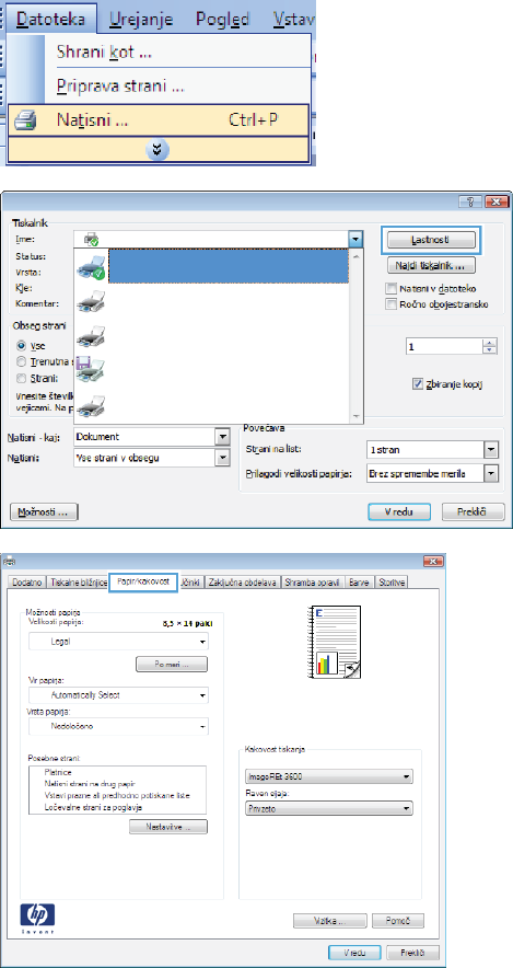 Dodatna opravila tiskanja v operacijskem sistemu Windows
