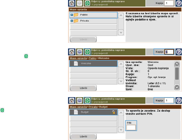 Izberite ime mape, v kateri je shranjeno opravilo.