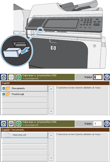 vrata USB na sprednjem delu izdelka. Natisnete lahko naslednje vrste datotek: