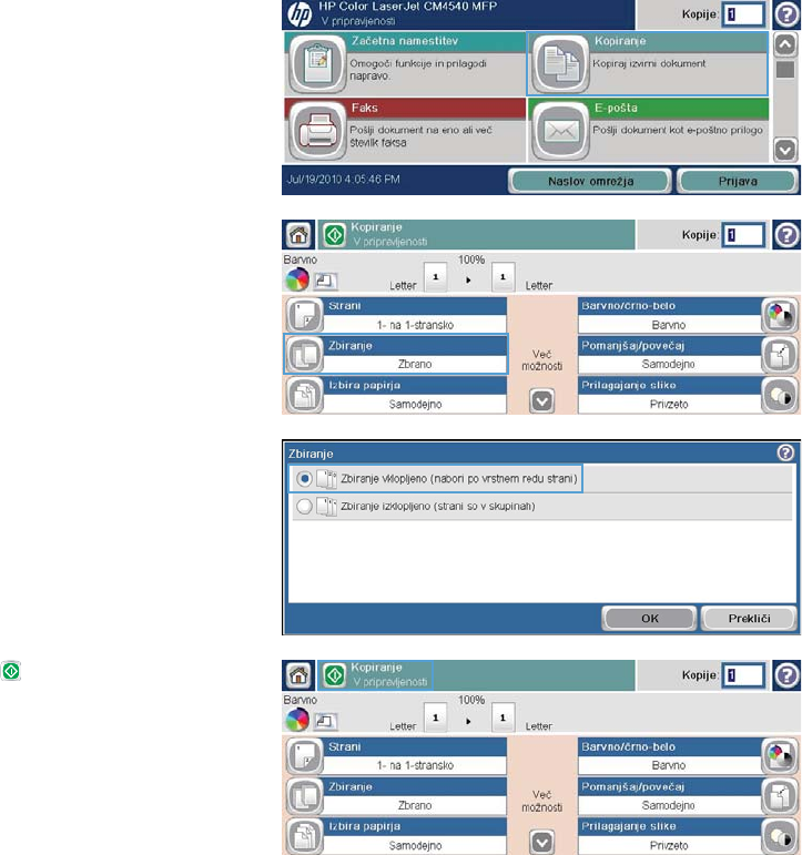 Dotaknite se gumba Zbiranje ali Spni/Zberi.