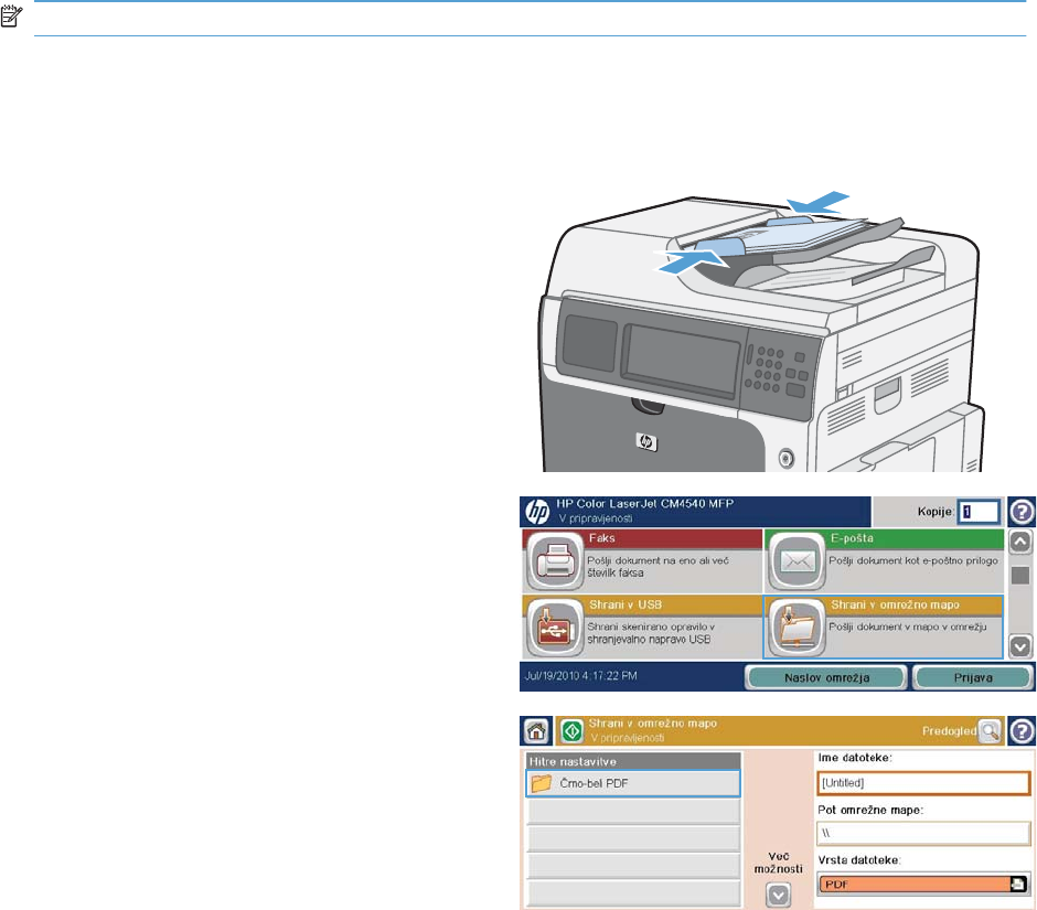 Pošiljanje optično prebranega dokumenta v omrežno mapo