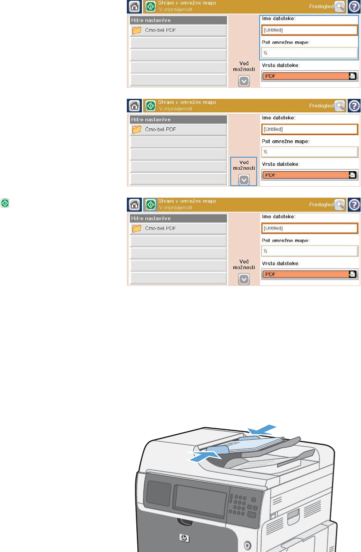 Pošiljanje optično prebranega dokumenta v mapo v pomnilniku