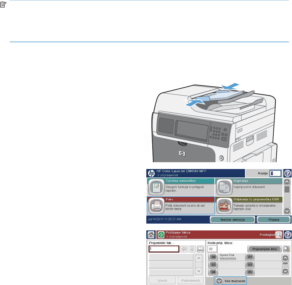 OPOMBA: Preden se faks pošlje, se optično prebere in shrani v pomnilnik. Ko se celoten dokument