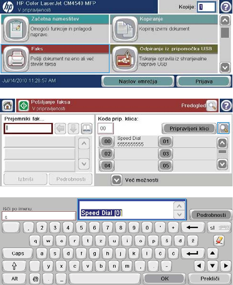 Pošiljanje faksa s pomočjo številk v imeniku faksa