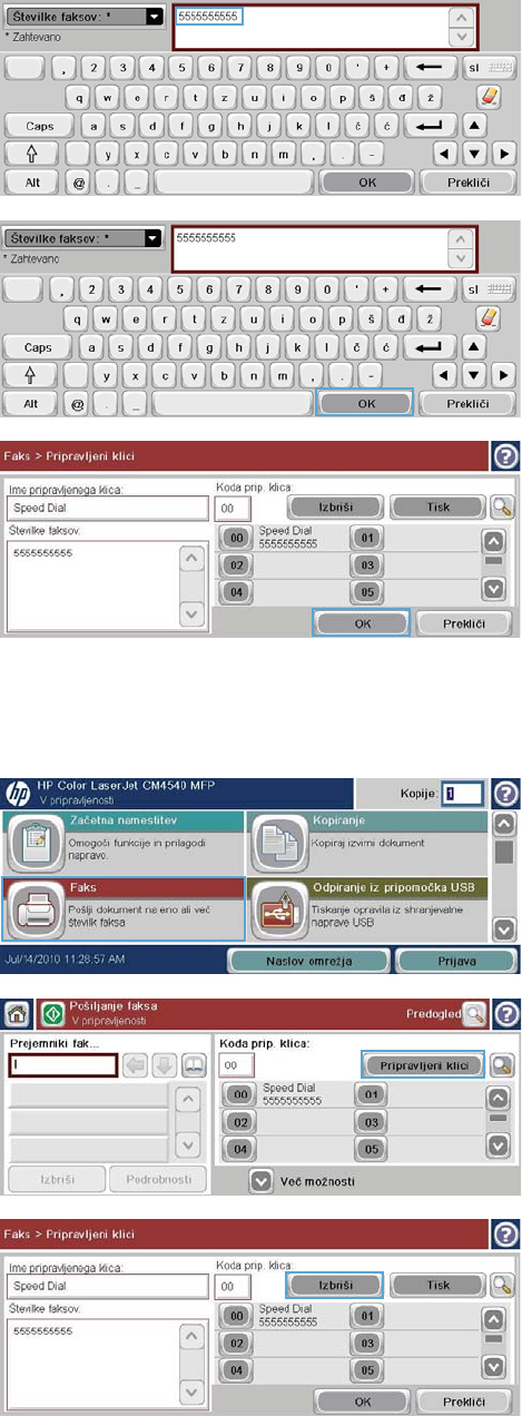 Dodajanje številke na obstoječi seznam za hitro klicanje