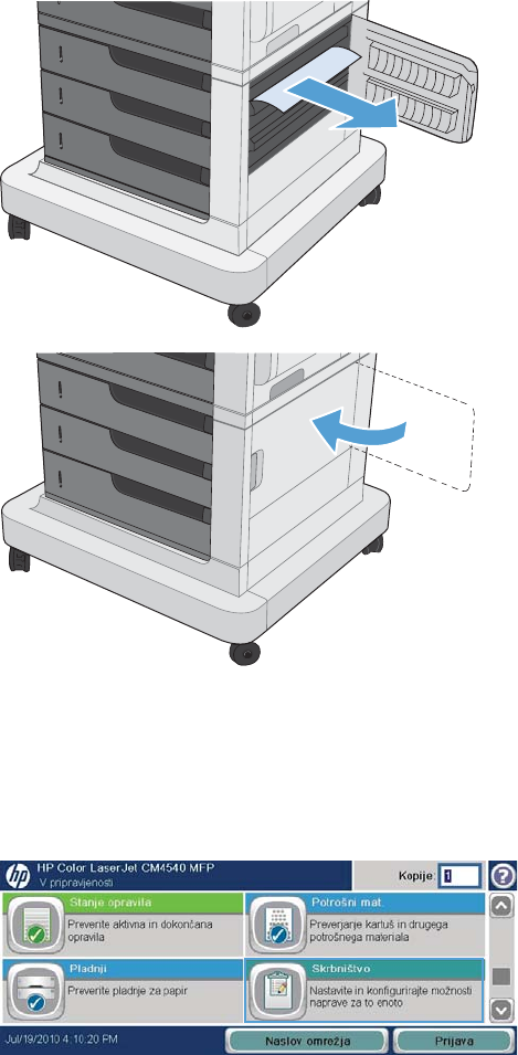 - Odpravljanje zagozditev v spodnjih desnih vratcih (pladenj 3, 4 ali 5)