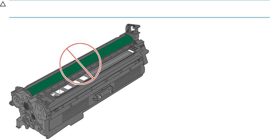 VOORZICHTIG: Raak de groene rol (afbeeldingsdrum) aan de onderkant van de cartridge niet