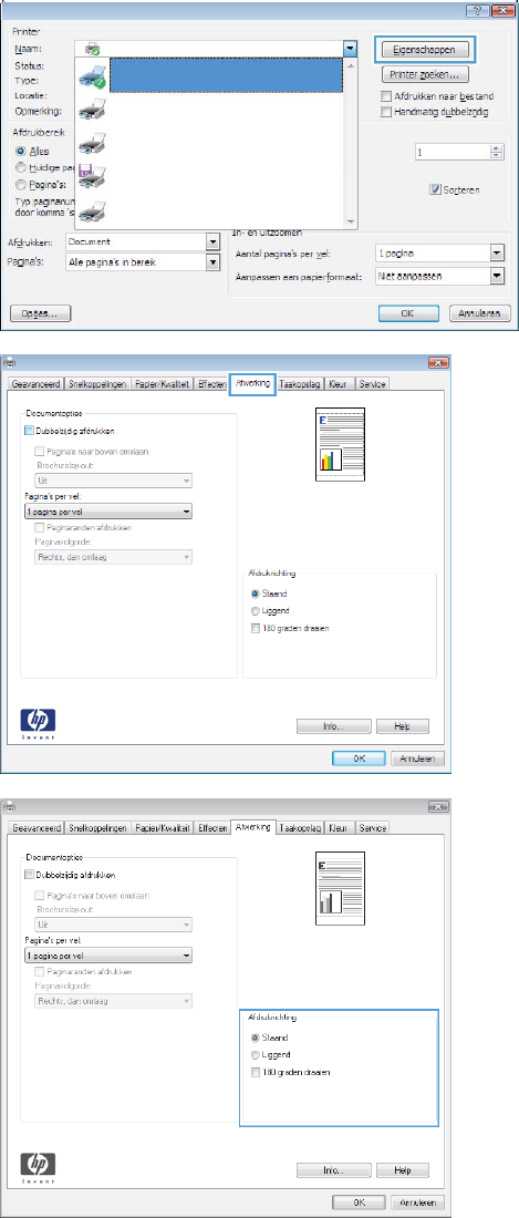 - De printerdriver zorgt er niet automatisch voor dat het geselecteerde apparaat wordt weergegeven in ...