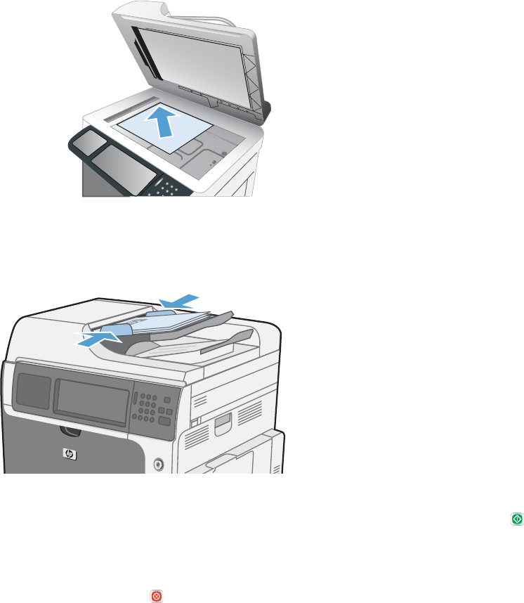 Als u vanaf de scannerglasplaat wilt kopiëren, plaatst u het originele document met de afdrukkant