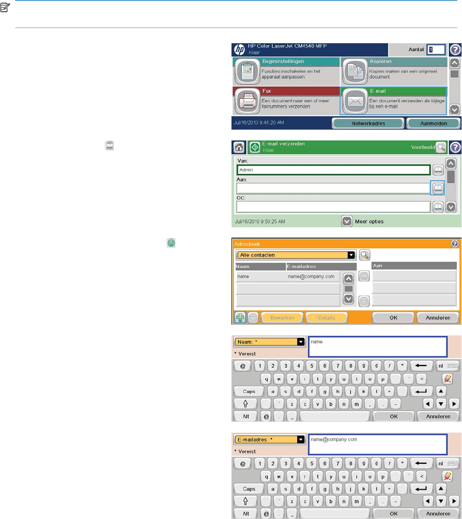 OPMERKING: U kunt ook de geïntegreerde webserver van HP (EWS) gebruiken om het adresboek