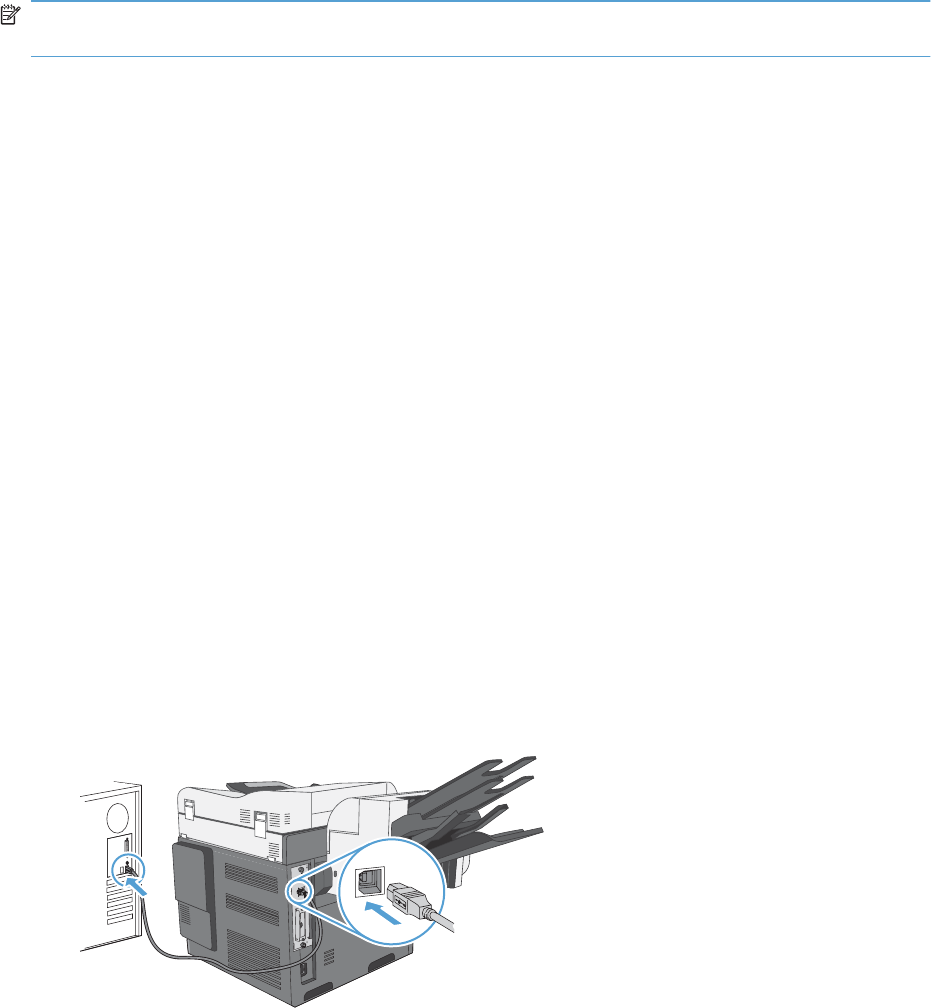 Het apparaat ondersteunt een USB 2.0-aansluiting. Gebruik een USB-kabel van het type A-naar-B. HP