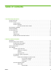 Table 1-1 Software technical reference overview (continued) Chapter Content This chapter also contains general information about other software features, including the following topics: ● Driver configuration for Microsoft® (MS) Windows® ● HP Embedded Web Server (network models only) ● HP ToolboxFX ● HP Web Jetadmin Chapter 3, Install Windows printing-system components This chapter provides instructions for installing the product in Windows operating systems by using various installation methods.