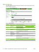Poniższa ilustracja i tabela zawierają informacje dotyczące ekranów HP EWS.