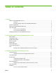 List of tables Table 1-1 Table 2-1 Table 2-2 Table 2-3 Table 2-4 Table 2-5 Table 2-6 Table 3-1 Table 3-2 Table 3-3 Table 3-4 Table 3-5 Table 3-6 Table 3-7 Table 3-8 Table 3-9 Table 3-10 Table 3-11 Table 3-12 Table 3-13 Table 3-14 Table 4-1 ENWW HP Embedded Web Server ................................................................................................................ 4 Device Status ................................................................................................................