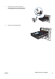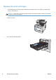 6. Remove the orange, plastic shield from the bottom of the new print cartridge. 7. Do not touch the imaging drum on the bottom of the print cartridge. Fingerprints on the imaging drum can cause printquality problems. 8. Insert the new print cartridge into the product.