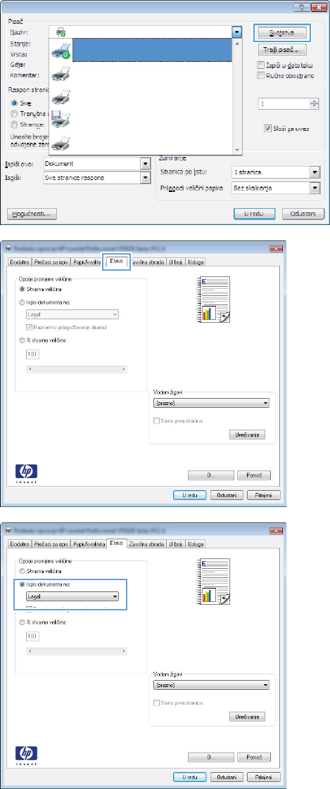 - Podešavanje postavki ispisa u upravljačkom programu pisača