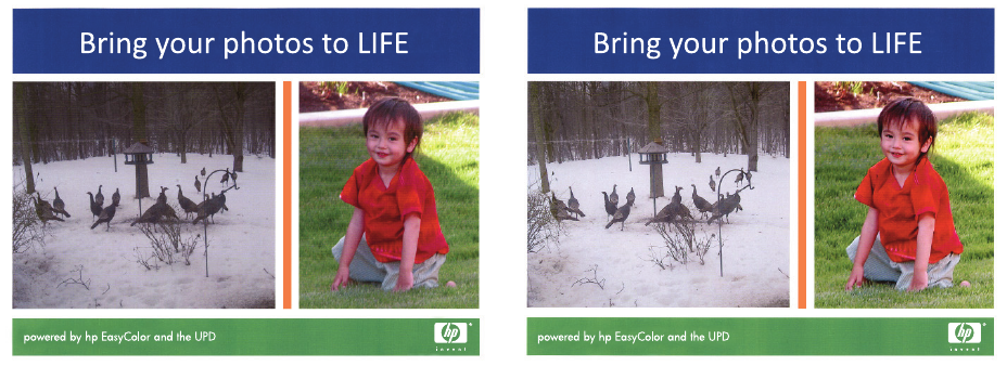Na sljedećem primjeru, slike na lijevoj strani stvorene su bez korištenja opcije HP EasyColor. Slike