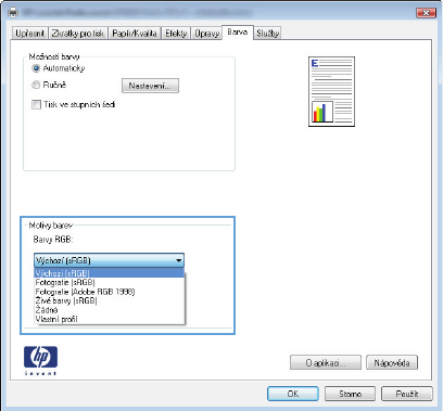 Výchozí (sRGB): Tento motiv nastaví produkt pro tisk dat RGB v režimu zařízení typu raw.