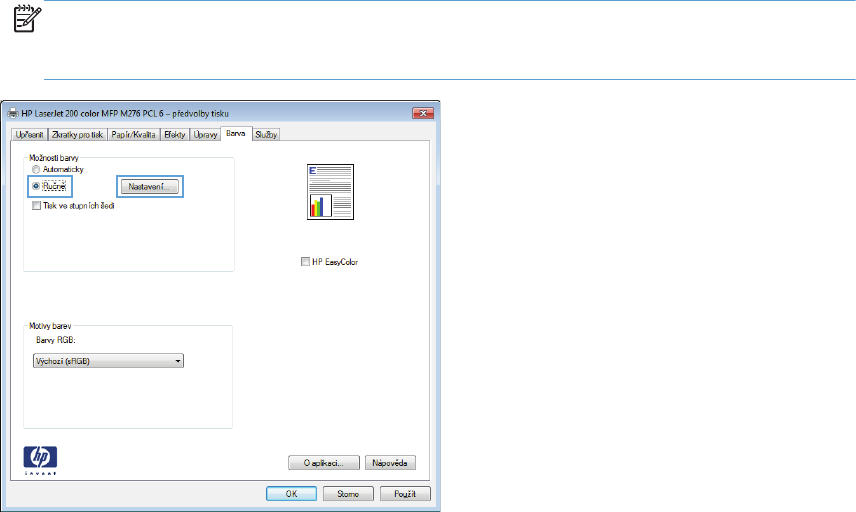 POZNÁMKA: Pokud nastavení barev změníte ručně, může to mít vliv na výstup.