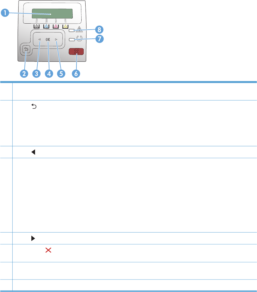 1 Displej ovládacího panelu: Displej poskytuje informace o zařízení. Pomocí nabídek na displeji lze provádět nastavení