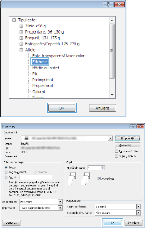 Imprimare, faceţi clic pe butonul OK pentru a