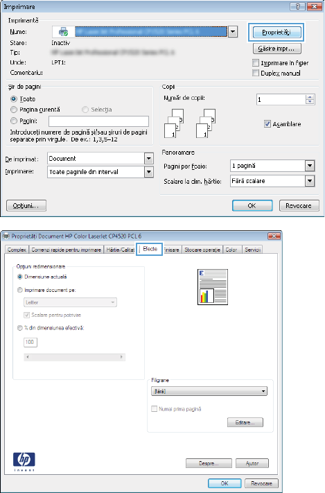 Scalarea unui document pentru a se încadra în dimensiunile paginii (Windows)