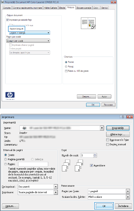 6. În caseta de dialog Imprimare, faceţi clic pe