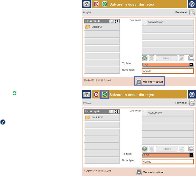 8. Atingeţi butonul Pornire pentru a salva fişierul.