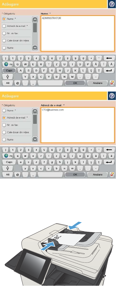 - Trimiterea unui document scanat către una sau mai multe adrese de e-mail