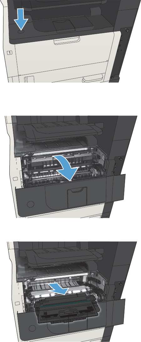 1. Apăsaţi butonul de eliberare a uşii cartuşului.