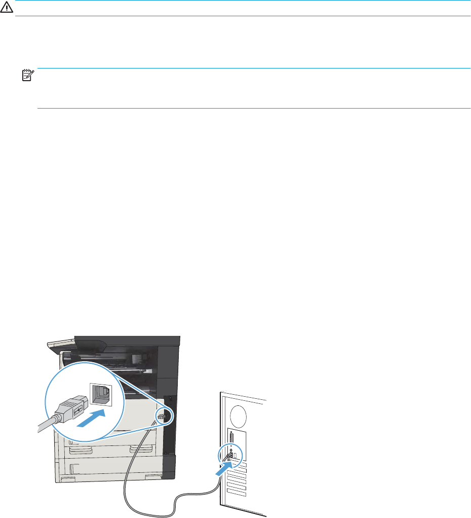 NOTĂ: Când produsul este conectat cu un cablu USB, procesul de instalare a software-ului necesită ca