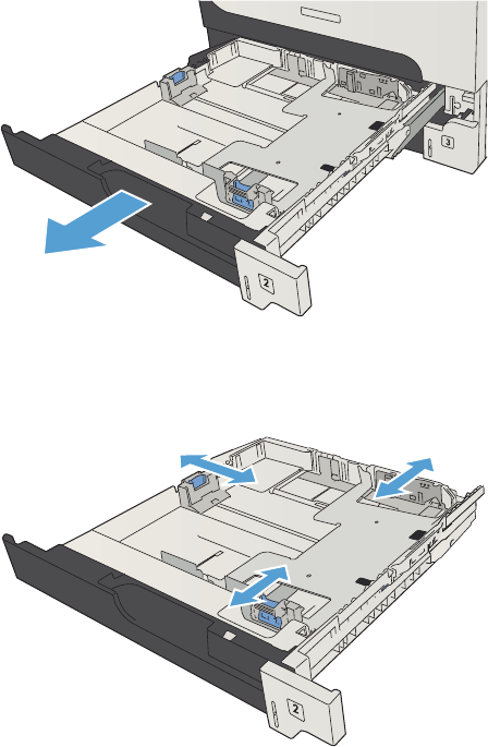 2. Reglaţi ghidajele pentru hârtie la dimensiunea