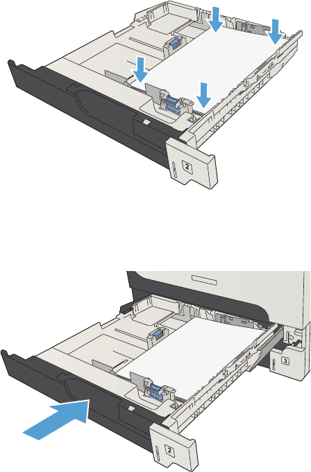 3. Încărcaţi hârtia în tavă. Asiguraţi-vă că topul este