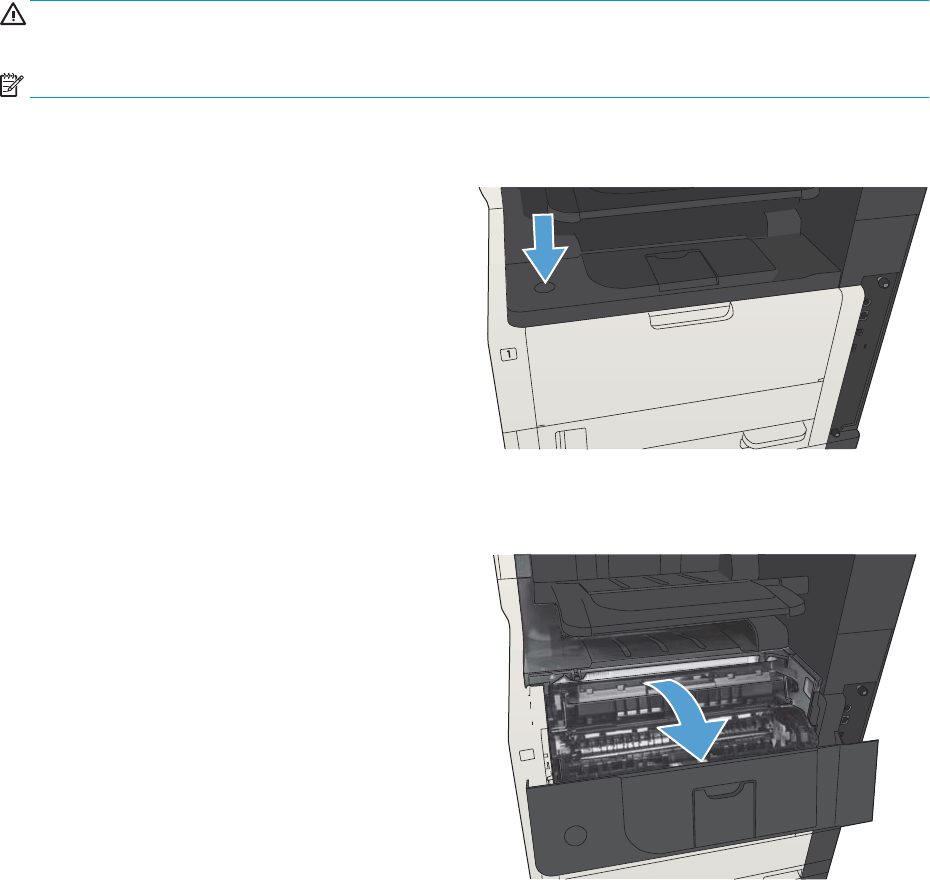 1. Apăsaţi butonul de eliberare a uşii cartuşului.