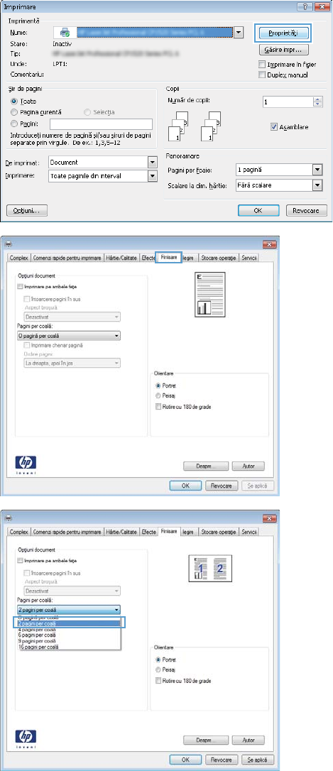 - Stabilirea setărilor de tip de hârtie pentru lucrarea de imprimare