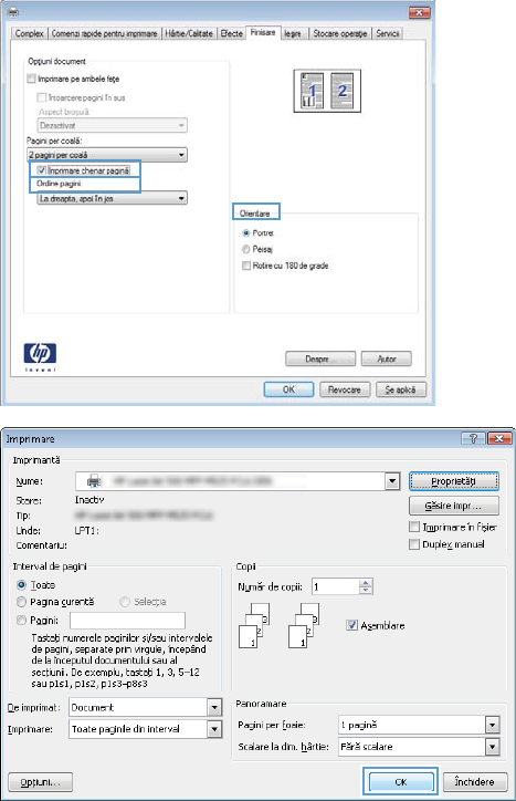 5. Selectaţi opţiunile corecte Imprimare chenar