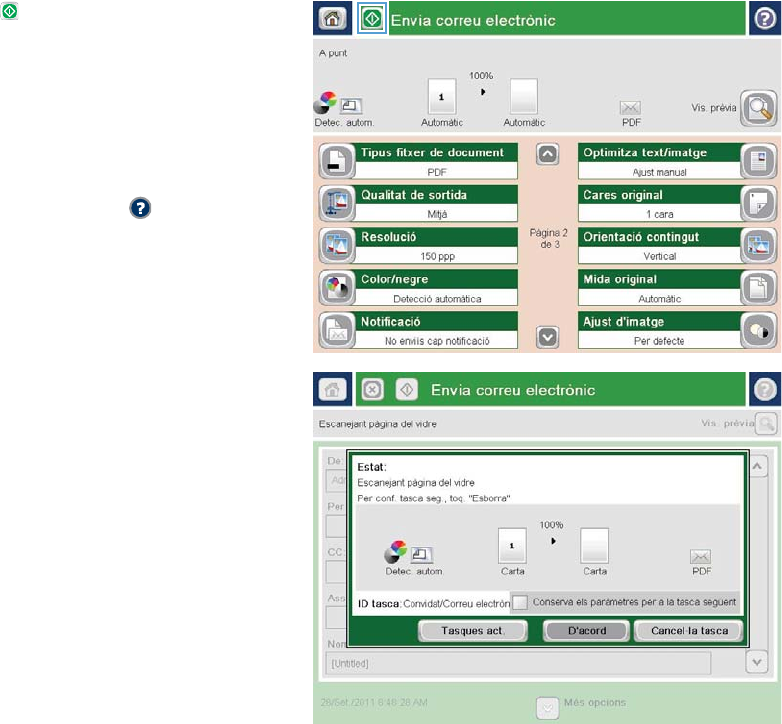 - Enviament d'un document escanejat a una o més adreces de correu electrònic