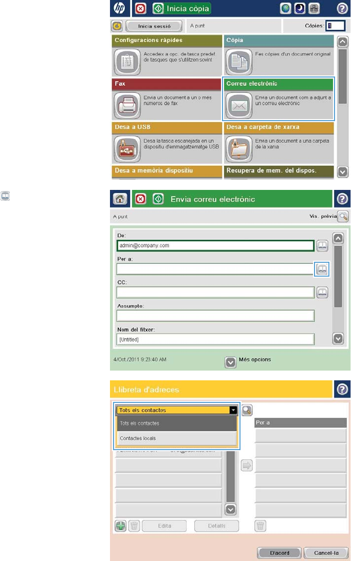 - Utilització de la llibreta d'adreces per enviar correu electrònic