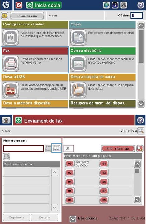 - Enviament d'un fax mitjançant números de la llibreta d'adreces de fax