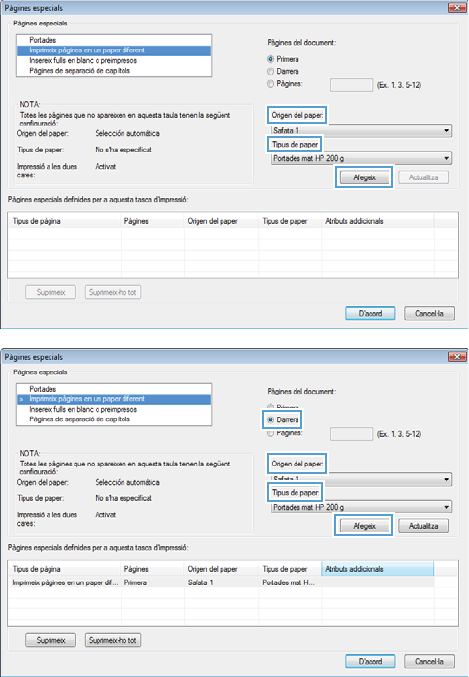 - Impressió de la primera o l'última pàgina amb un paper diferent (Windows)